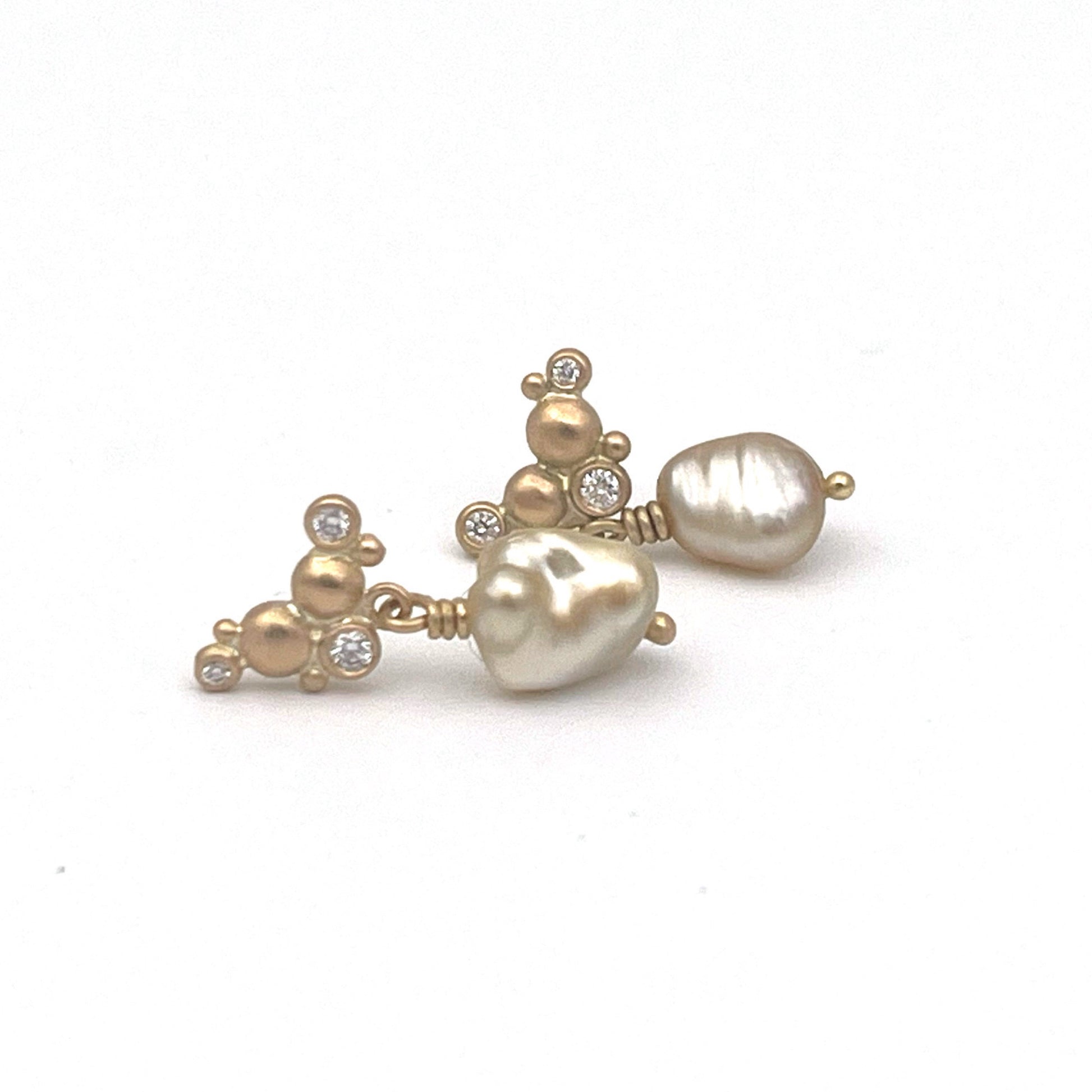 Materiale: 18 k guld med 2 × 0,01 ct., 1 × 0,02 ct. og 1 × 0,03 ct. TW/vvs brillanter samt South Sea keshi-perler