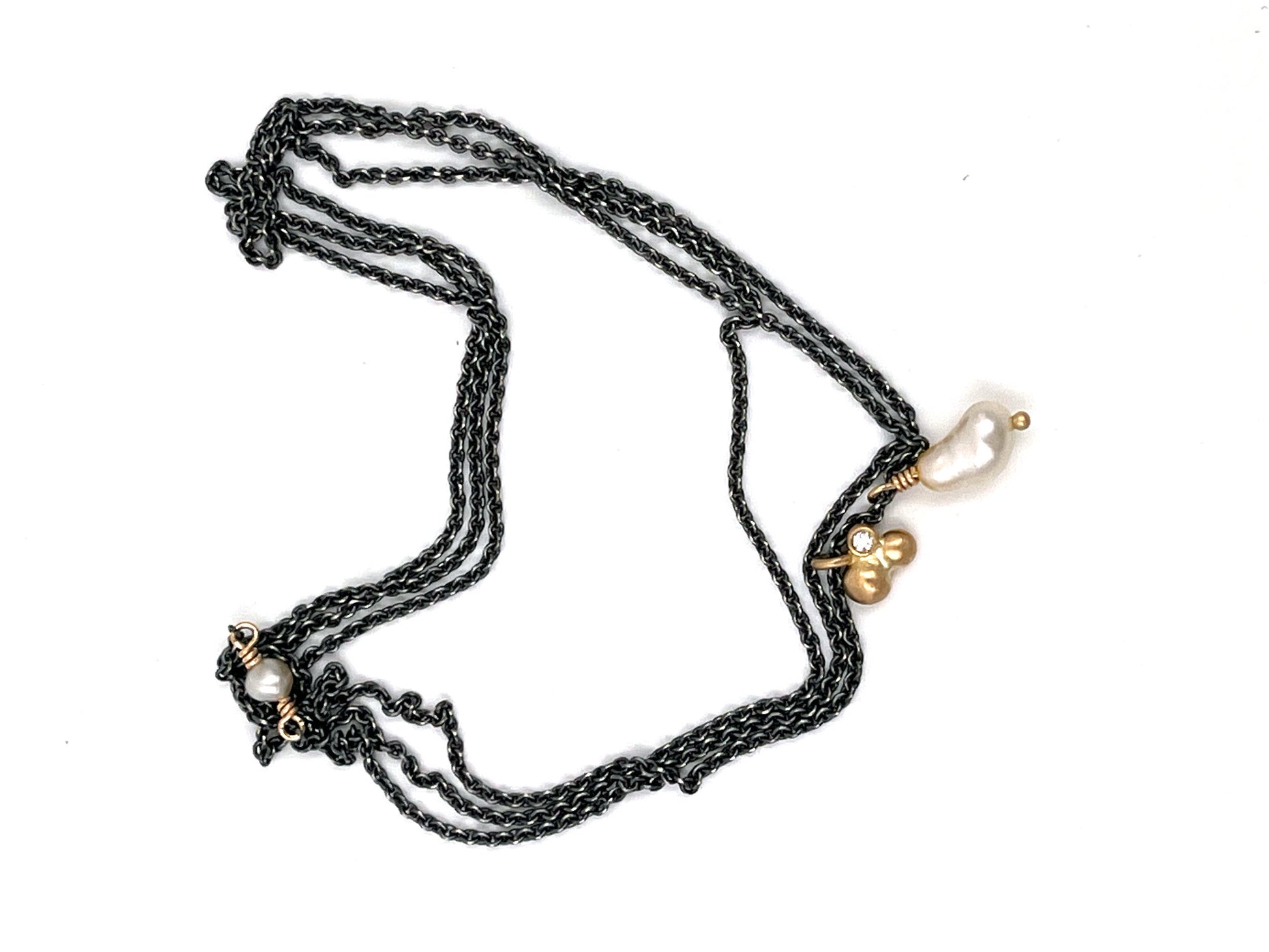 Materiale: 18 k guld med 1 × 0,015 ct. TW/vvs brillant og South Sea keshi-perler på sølvkæde