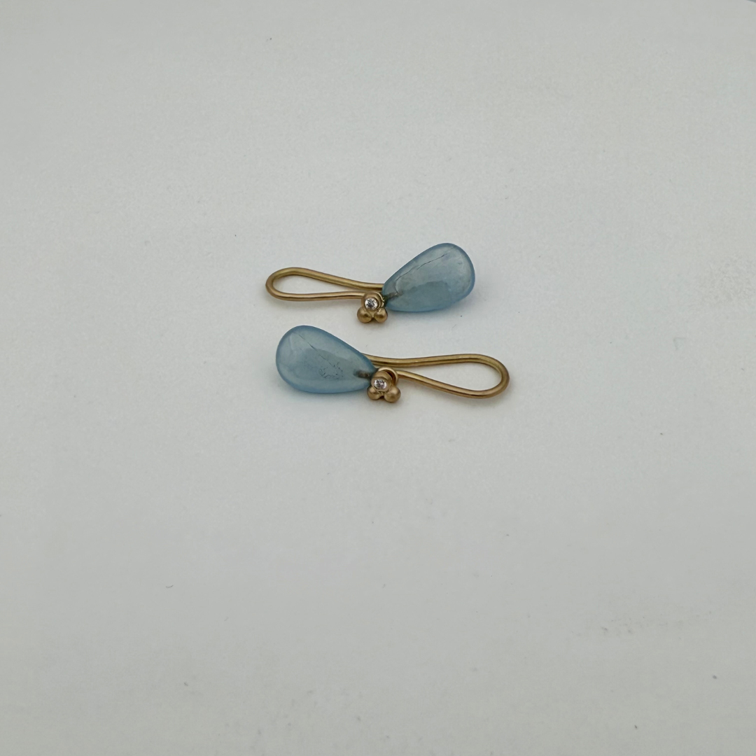 Materiale: 18k guld med dråbeformet aquamarin samt 2×0,02 ct. TW/vvs brillanter