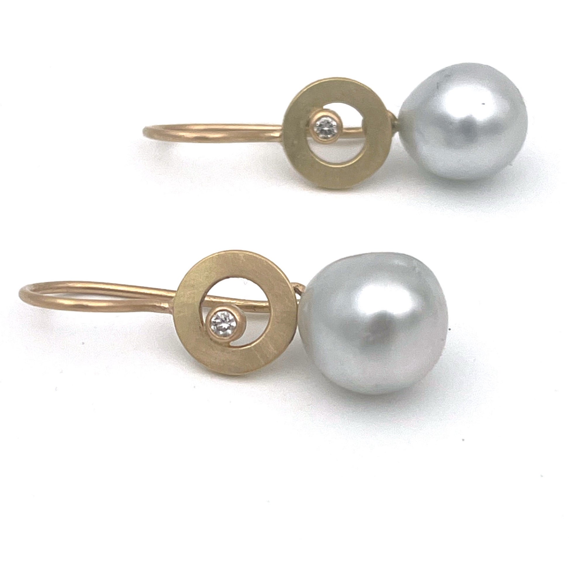 Materiale: 18 k guld med 2 × 0,05 ct. TW/vvs brillanter samt South Sea-perler