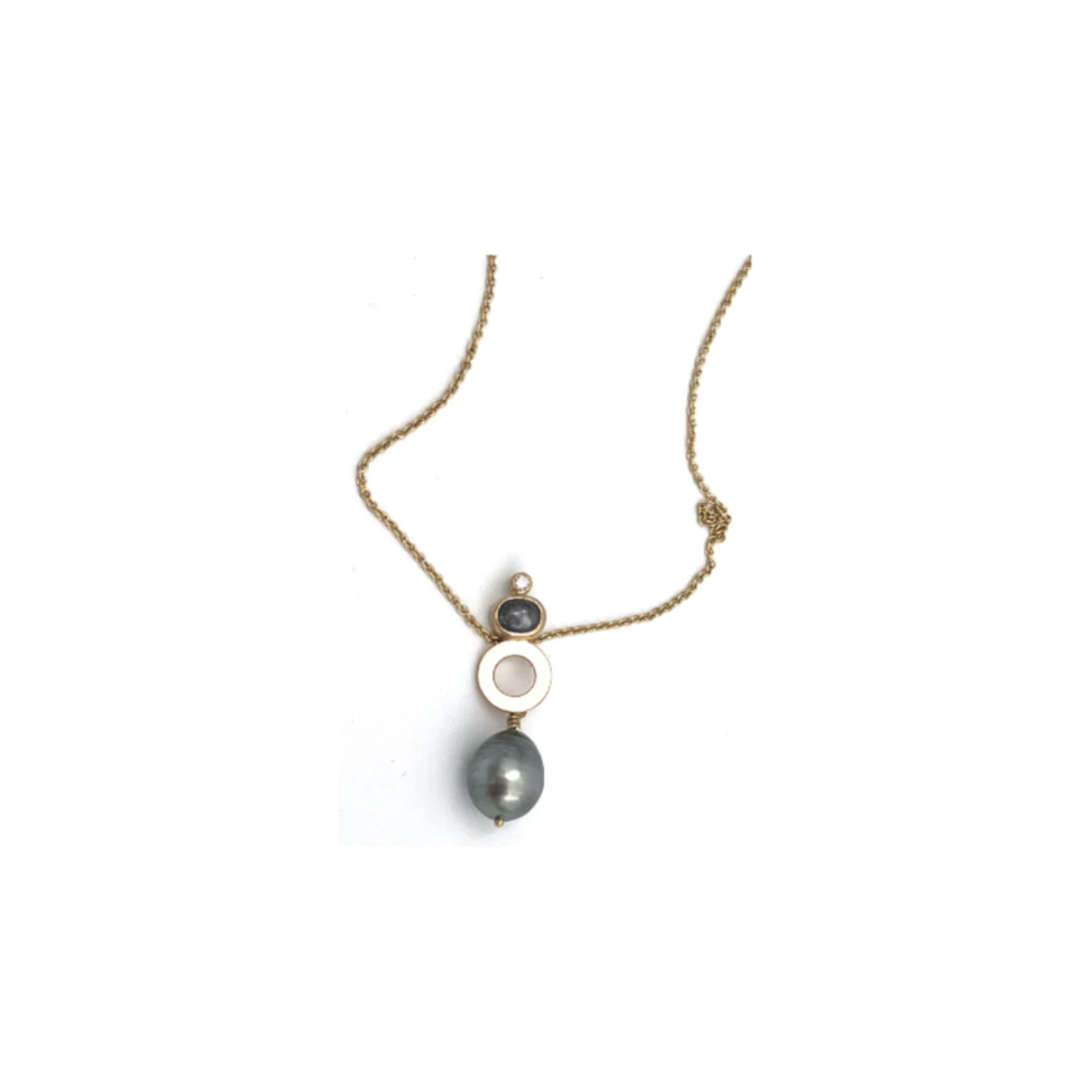 Materiale: 18 k guld med stjernesafir, Tahiti-perle og 1 × 0,05 ct. TW/vvs brillant