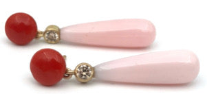 Materiale: 18 k guld med 2 × 0,22 ct. champagnebrillanter, 2 × koraller og 2 × Peru-opal dråber