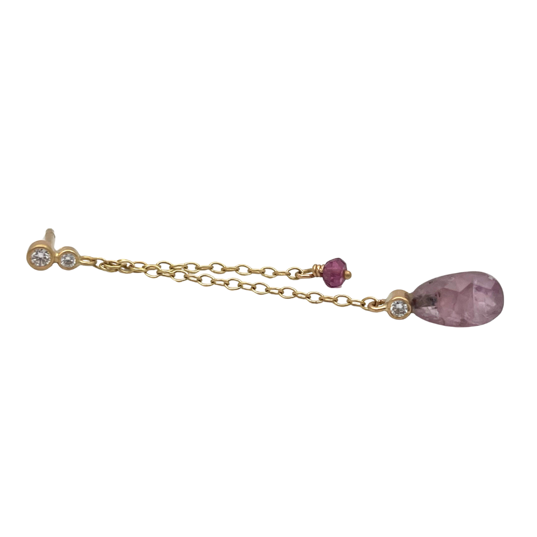 Materiale: 18 k guld med granat, safir samt 1 × 0,02 ct., 1 × 0,03 ct. og 1 × 0,05 ct. TW/vvs brillanter