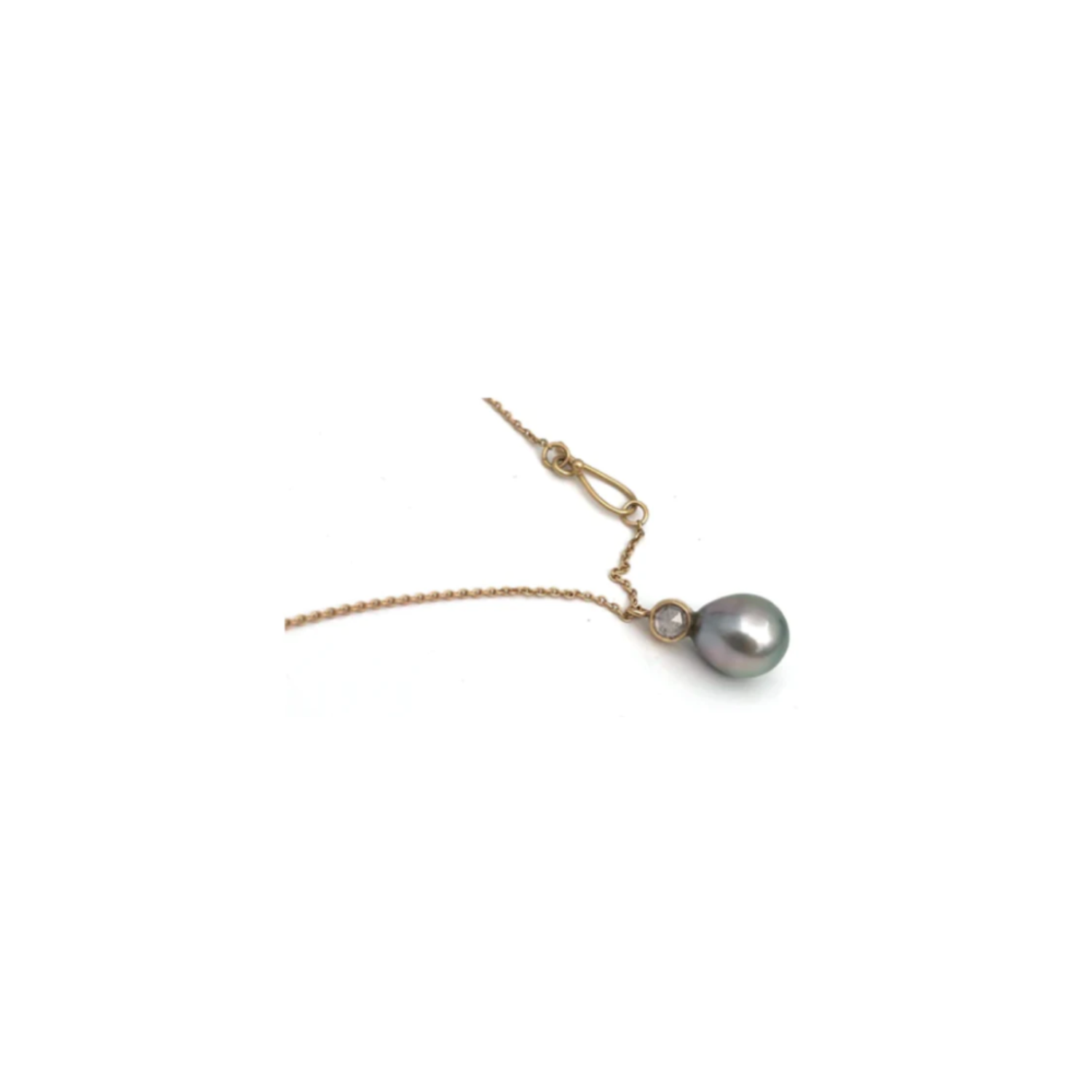 Materiale: 18k guld halskæde med Tahiti-perle og 0,43 ct. rosetslebet salt & pepper-diamant
