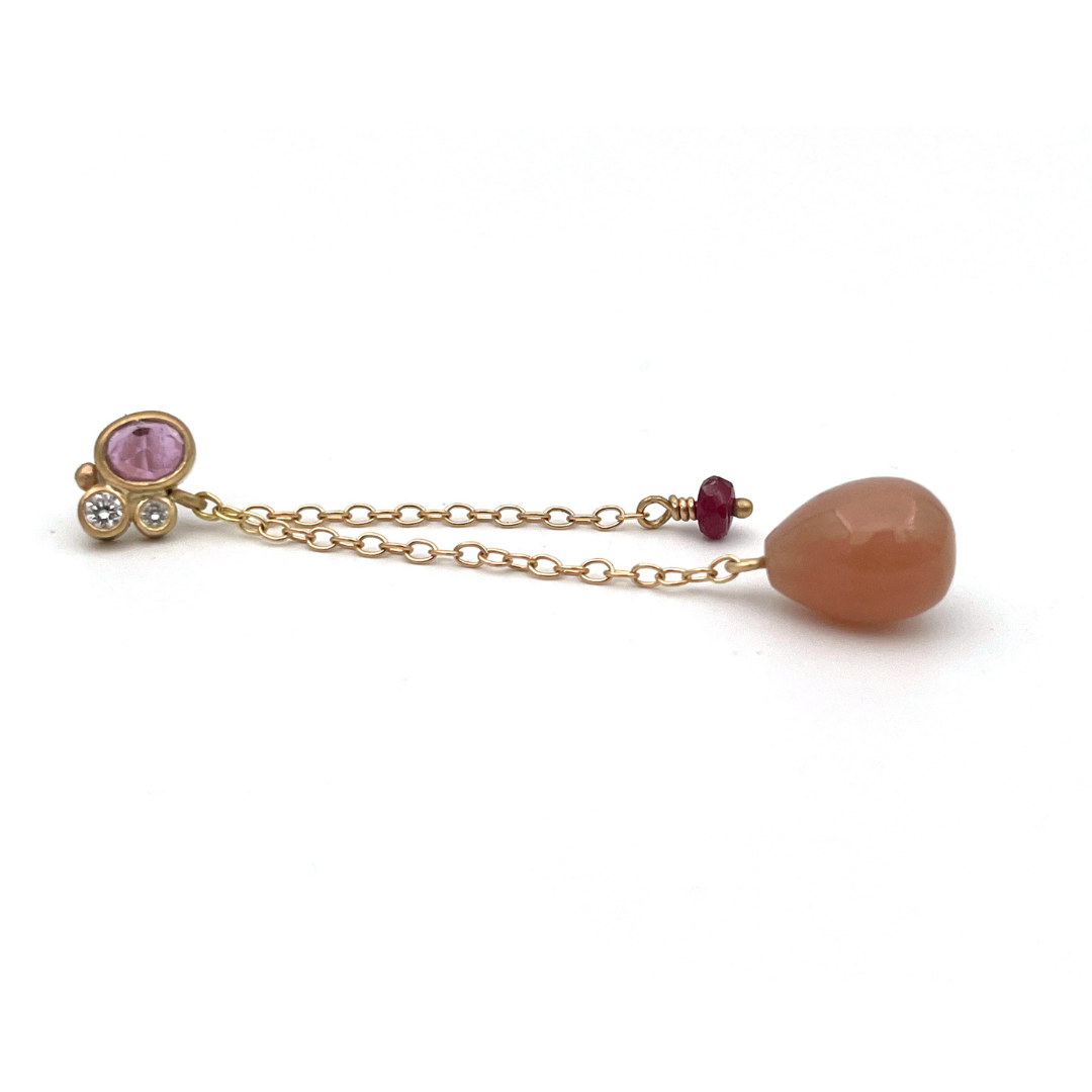 Materiale: 18 k guld med granat, månesten, lille granat samt 1 × 0,02 ct. og 1 × 0,05 ct. TW/vvs brillanter